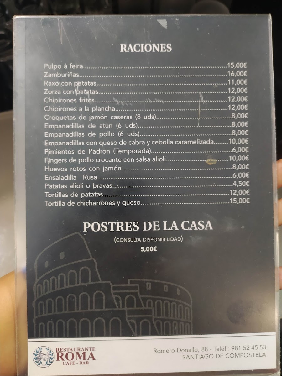 Welcome to Restaurante Roma, a culinary gem nestled in the heart of Santiago de Compostela. Located at Av. de Romero Donallo, 88, this vibrant eatery is a haven for food lovers, offering a menu that resonates with flavor and tradition.